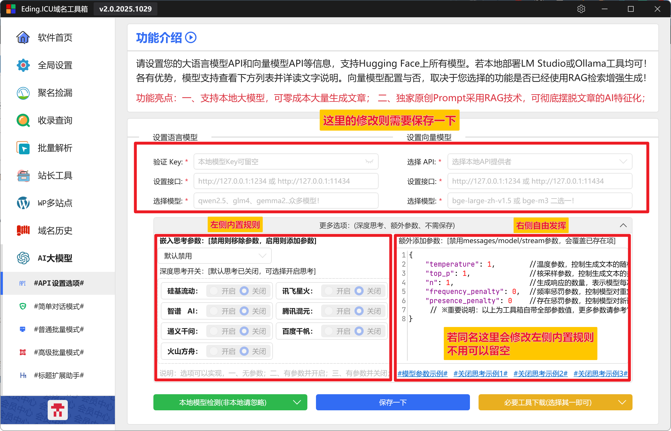 本工具的AI大模型的设置,看似复杂实则简单,看图更容易理解。